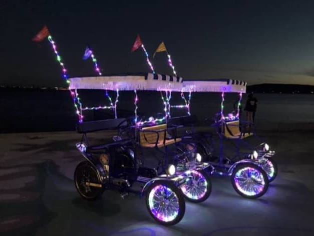 Multiple factors affect how far you will get on a single battery charge including: hills, headwinds, and rider weight. Rider mode will also affect battery life. Our bikes have several rider modes ranging from eco, to normal, to high mode. You will typically get up to 4 hours of straight riding on eco mode. For those renting for a full day, you are welcome to come back to the shop to swap out your battery.